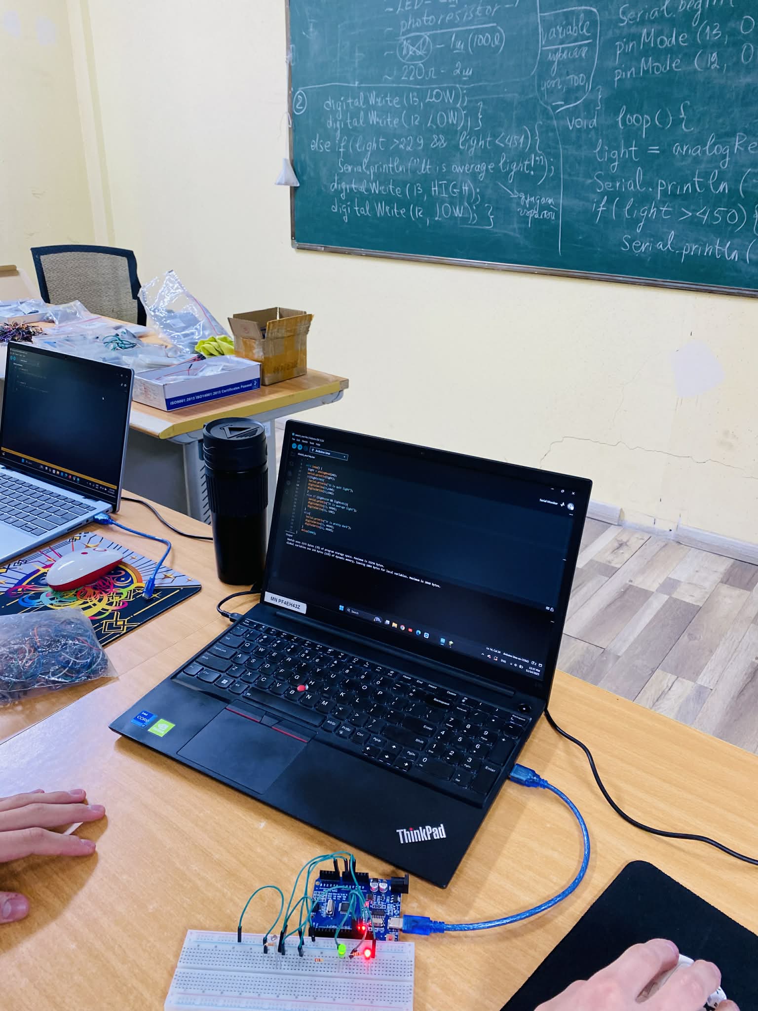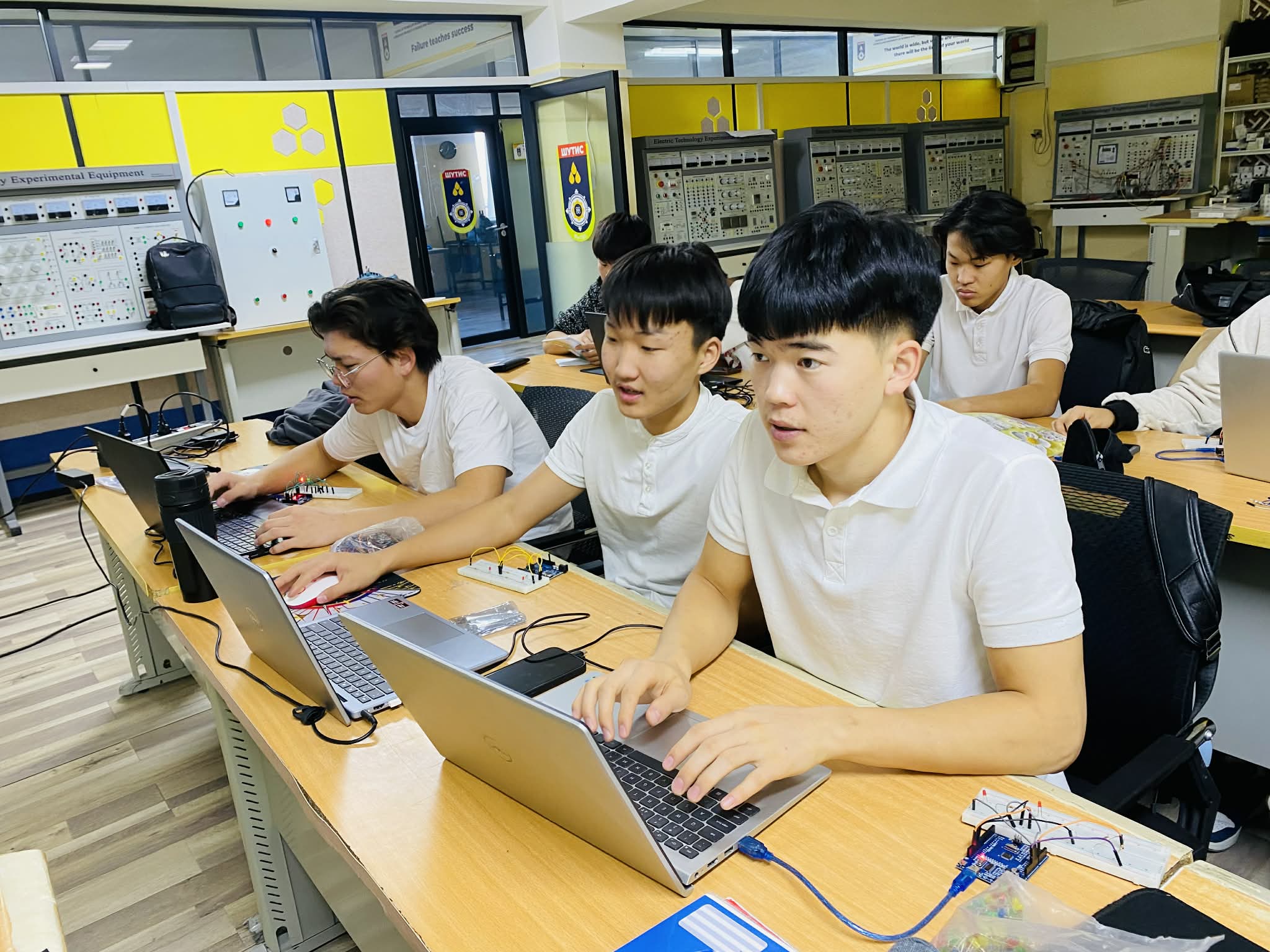 ШУТИС-ийн харьяа Өмнөговь аймаг дахь Технологийн сургуулийн Коосэн хөтөлбөрийн Цахилгааны инженерчлэл мэргэжлийн гуравдугаар ангийн оюутнууд “Цахилгаан ба электроникийн туршилт 3” хичээлийн хүрээнд микроконтроллерт суурилсан автомат удирдлагын төрөл бүрийн схем угсран ажиллуулах дадлага хийж байна.