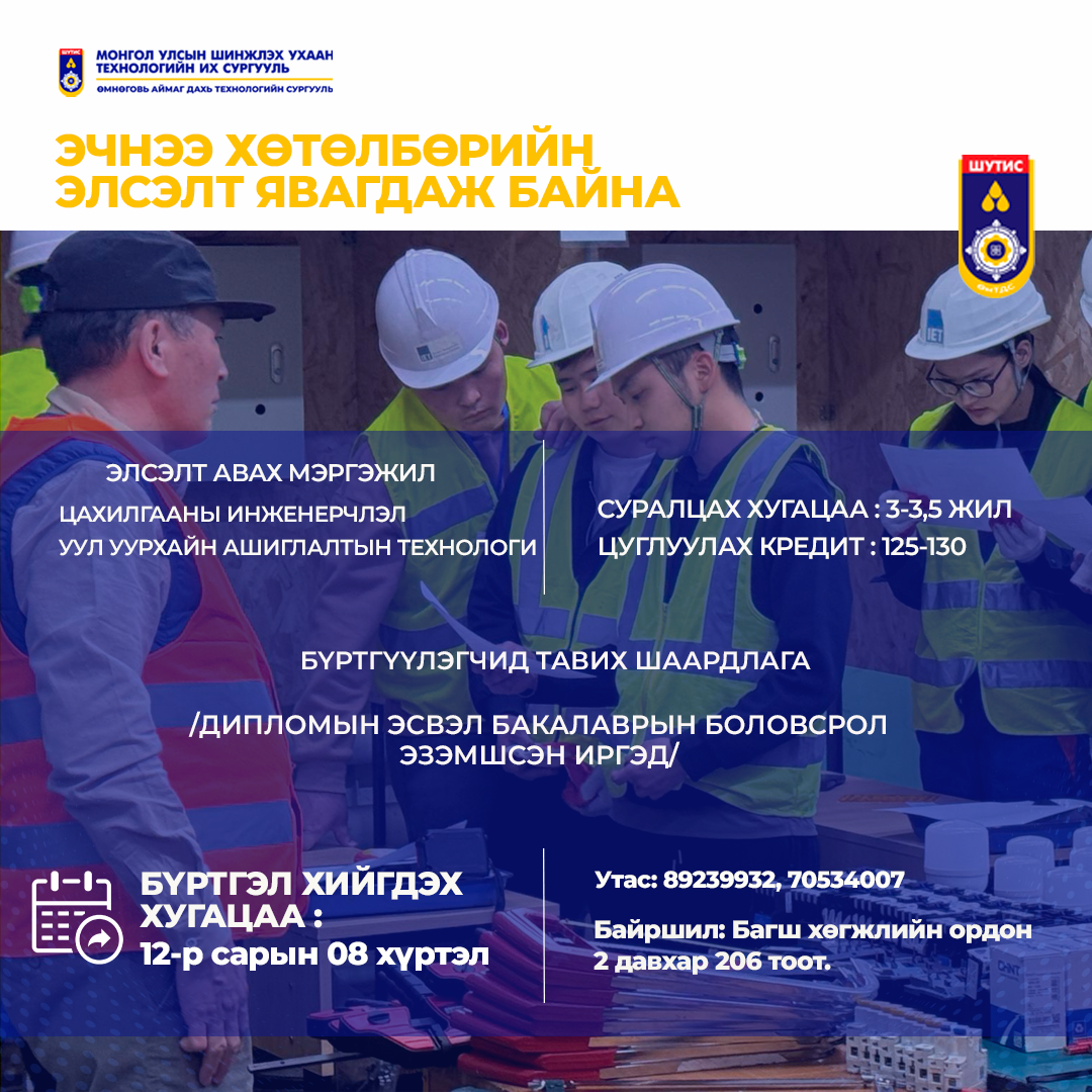 Эчнээ хөтөлбөрийн элсэлт үргэлжилж байна.