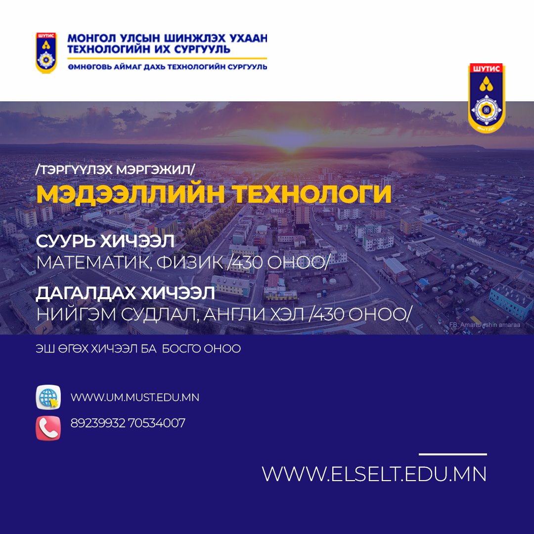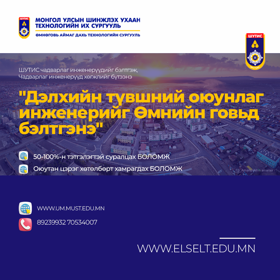 Веб сайт: www.um.must.edu.mn, www.elselt.edu.mn