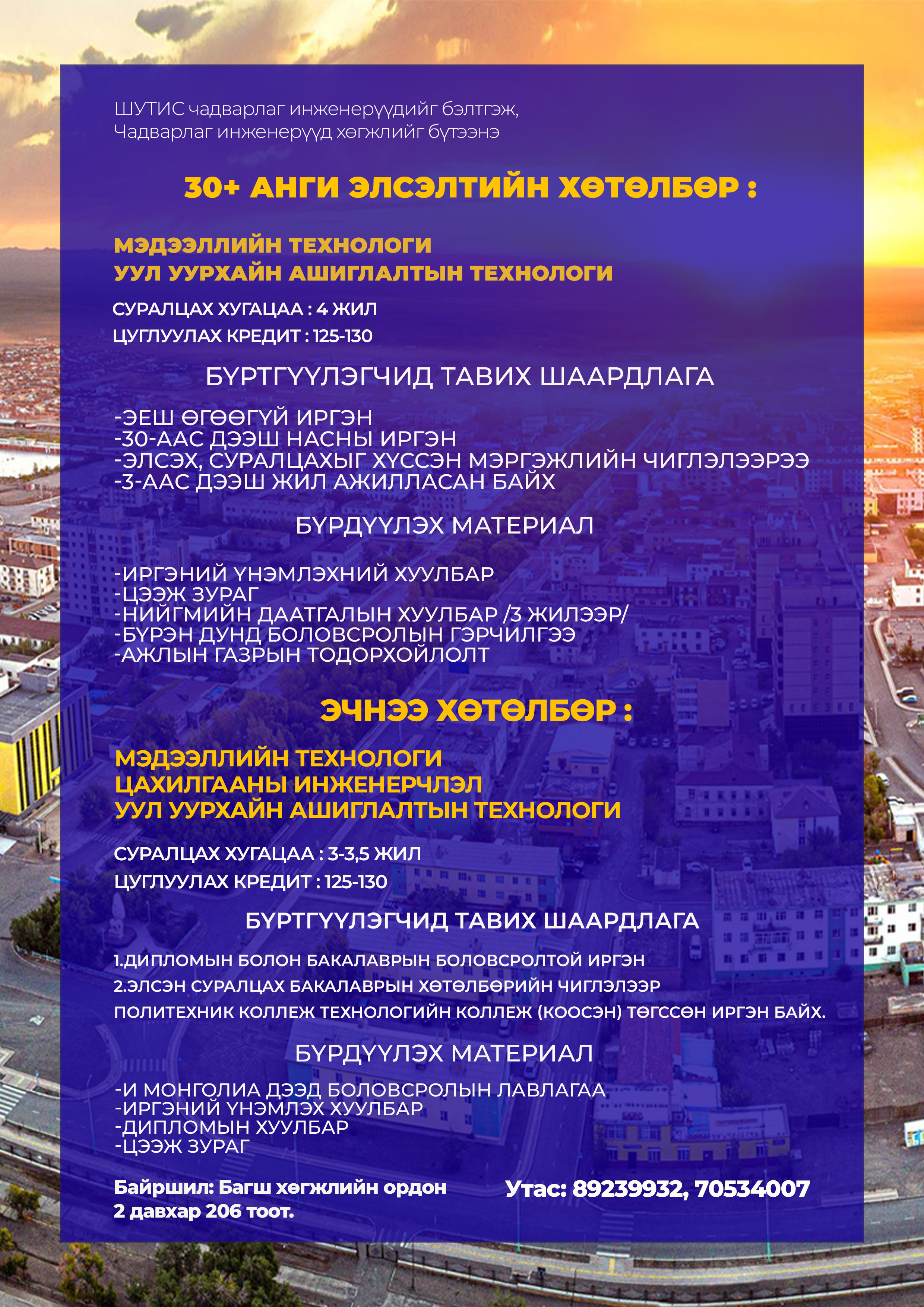 30+ ангид элсэлт авч буй мэргэжлүүд :